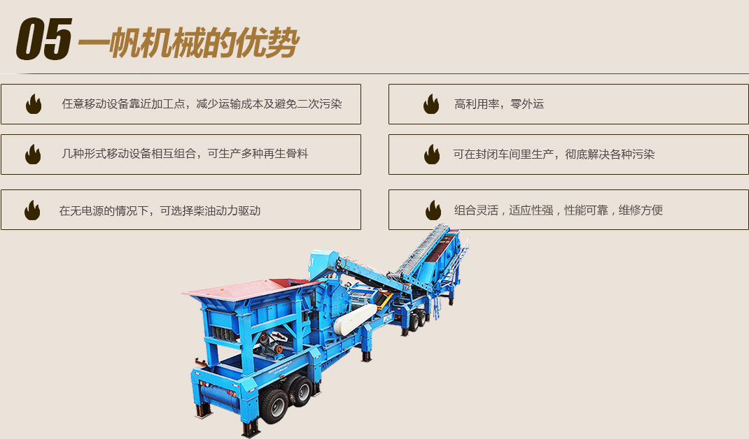 3、幾種形式移動設備相互組合,可生產多種再生骨料