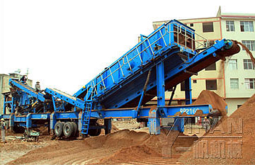 移動式建筑垃圾處理設備主要由反擊式移動破碎站和移動篩分站組成,她由裝載機將需要破碎的物料給入料倉,經過振動給料機,篩分雜土后均勻進入破碎機,破碎后的物料經除鐵器,除鐵塊、鋼筋等物質,然后由皮帶機將破碎后的物料送入振動篩進行篩分,不規格的大物料,返回破碎機進行二次破碎,而符合規格的小物料,被傳輸到固定位置。整套設備性能可靠、穩定性好,移動性強、降低物料運輸成本、組合靈活、適應性強、維修方便等特點,生產出的產品可以廣泛應用于免燒磚、道路基礎、建筑等行業,為城市建設走上良性循環之路提供了一條新的發展思路。