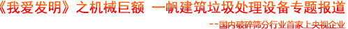 《我愛發明》欄目這次主題是以"科技創新"為基點,鼓勵企業、個人已發展創新的理念去創造價值、建筑垃圾設備實現價值。而鄭州一帆機械設備有限公司則是國內早期從事建筑垃圾處理的獨創企業之一,隨著這幾年一帆公司建筑垃圾設備的事業的輝煌發展,在國內破碎機行業專業處理建筑垃圾設備中,一帆機械一直處于優勢地位。