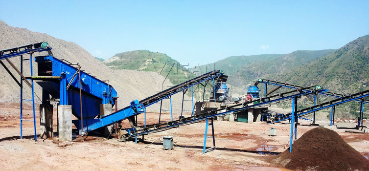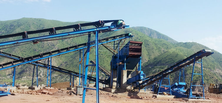 根據以上特性,一帆機械在配置河卵石破碎篩分生產線中,首先排除了易損件磨損較為嚴重的錘式破碎機、反擊式破碎機等設備。塔吉克斯坦現場是采用ZSW490X1100振動給料機 ,PE750X1060 鄂破,PSGB1300和PSGD900 圓錐破和3YK2160 圓振動篩配置而成的一條時產150 - 180噸的河卵石破碎篩分生產線。