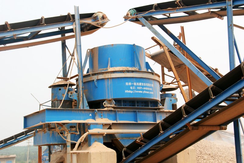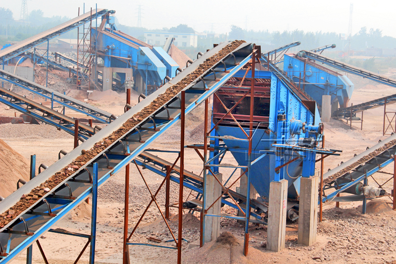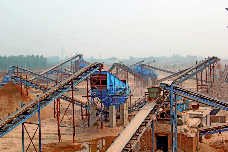 第二條是由振動給料機-顎式破碎機-圓錐式破碎機-直線振動篩-制砂機-圓振動篩-洗砂機組成的一條生產線。