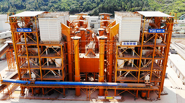 鄭州一帆機械SSF系列高品質機制砂系統較傳統制砂有級配合理、粒型圓潤、含粉可控的優勢特點,采用高度集約的塔樓式全封閉架構布置,技術獨特,性能穩定,安全系數極高,其中的分離拌濕系統能夠是成品砂含粉率和含水率合格成分均勻,不易離析;粉塵分離系統也采用負壓式除塵器,結合全流程密封操作,環保指標到達國家標準。它是集高效制砂、粒型優化、石粉控制、級配合理、含水率控制、綠色環保于一體的高效精品制砂系統。
