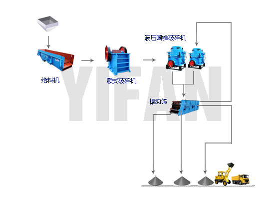 鐵礦石選礦破碎工藝: 鐵礦石選礦,根據(jù)礦石的種類和性質(zhì),可以有多種不同的工藝流程。選礦廠一般采用粗破、中破和細(xì)破三段破碎流程破碎鐵礦石。粗破多用顎式破碎機(jī),中、細(xì)碎使用圓錐式破碎機(jī)。通過粗破的礦石,然后經(jīng)過中、細(xì)破碎成適合進(jìn)入球磨機(jī)的物料粒度。 鐵礦石由振動(dòng)給料機(jī)均勻地送到顎式破碎機(jī)進(jìn)行粗破,粗破后的物料由膠帶輸送機(jī)送入到粗碎圓錐破進(jìn)行進(jìn)一步破碎,破碎后的物料被輸送到振動(dòng)篩進(jìn)行篩分,達(dá)到成品粒度要求的物料通過膠帶運(yùn)輸機(jī)輸送到成品料堆;未達(dá)到成品粒度要求的物料從振動(dòng)篩返回中碎或細(xì)碎圓錐破加工,形成閉路循環(huán)。成品粒度可按用戶的需求進(jìn)行組合和分級。? ? 鐵礦石選礦破碎工藝性能: 該鐵礦石選礦破碎生產(chǎn)線自動(dòng)化程度高、破碎率高、運(yùn)行成本低、節(jié)能環(huán)保、粒度細(xì)。山美為客戶提供完善的工藝流程方案及技術(shù)支持,亦可根據(jù)客戶的實(shí)際安裝條件設(shè)計(jì)非標(biāo)配套部件等。
