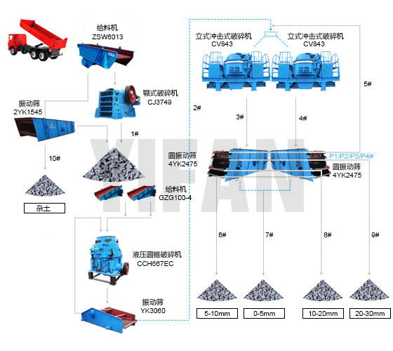 注:此工藝流程僅供參考,圖中所有參數不代表實際參數,最終結果根據石料特性不同而會有所出入。